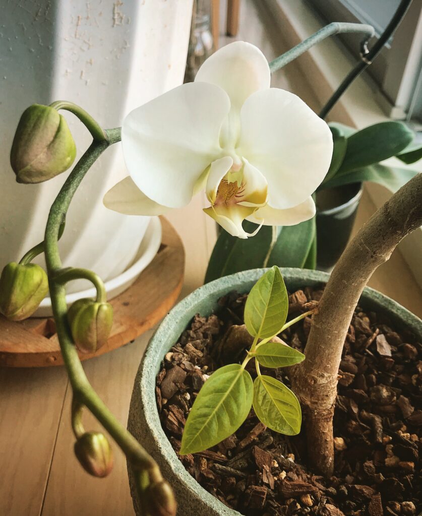 先日のブログで触れさせていただきました胡蝶蘭の蕾。このゴールデンウィークの間に見事に花を咲かせてくれました。まだ一つですからこれから全ての蕾が咲いてくれるのを楽しめると思うと本当に嬉しくなります。