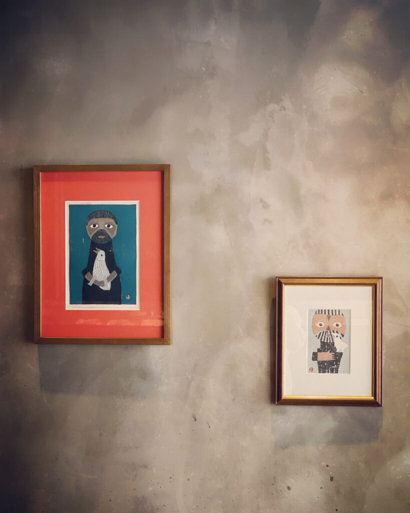 在職中、僕が左側の山男をLINEのアイコンにしていたら退職の際に勝井さんが持って行き!と仰って下さいました。御堂筋ロッヂに飾られていた4枚の山男の中の1枚。このリトグラフに関しては世界に100枚しかないものの中の1枚です。とても貴重なものを惜しみなく僕に託して下さいました。