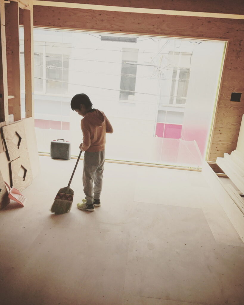 写真は開業前、何もない店内をまだ小さかった息子が箒で掃除してくれたものです。