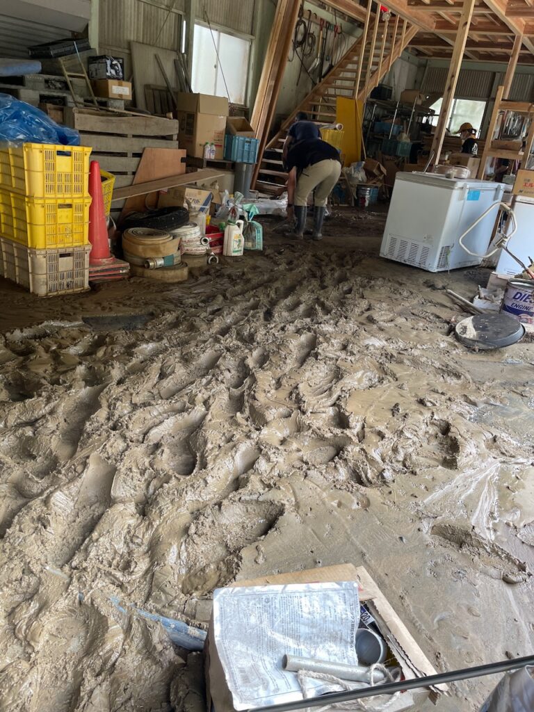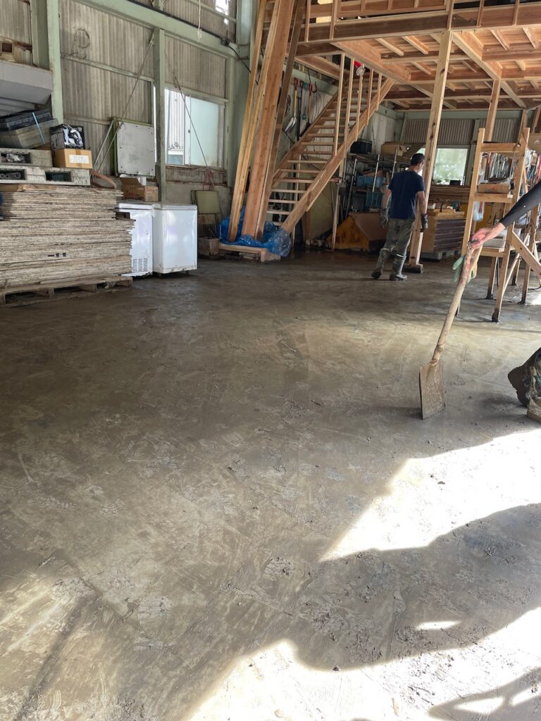 当日僕らは流れ込んだ泥のかき出し作業をしましたが約20人がかりでなんとか1つの倉庫を終える事か出来ました。人手と時間のかかる地道な作業です。その作業を必要とする場所はまだまだあります。
