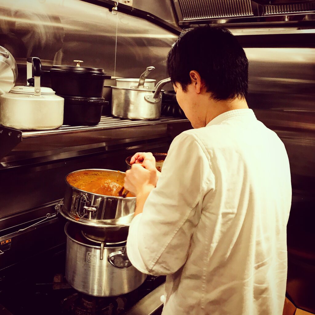 今日はかっちゃんがカレーを仕込んでくれています。実はこのカレーひとつとっても大きな判断の場面がありました。