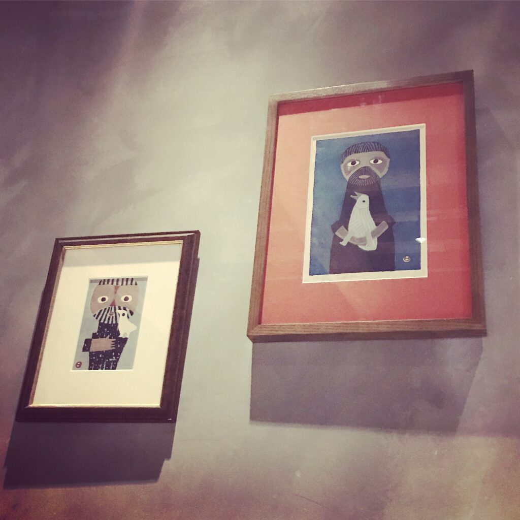 こちらは畦地梅太郎氏の山男シリーズ。お気づきの方もいらっしゃるかと思いますが、右側は御堂筋ロッヂに飾られていたものです。4枚あった山男の中でも僕が一番好きだったものを退職の際にお贈りいただいた本当に大切な一枚です。